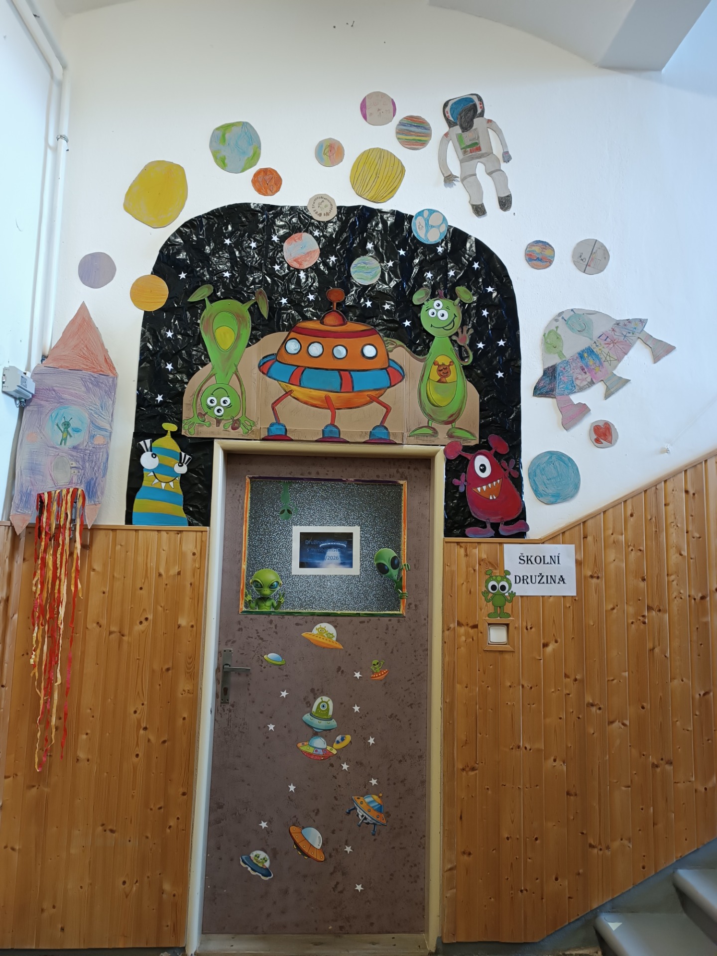 Září školního roku 2025/2026 bylo zaměřené především na seznámení se s novými žáky a také s novou družinovou hrou: Družinovou výpravou s mimozemšťany. Společnými silami jsme si vyzdobili prostory školní družiny, plníme první výzvy a společně čteme knihu Kosmokluk od autora Davida Walliamse.