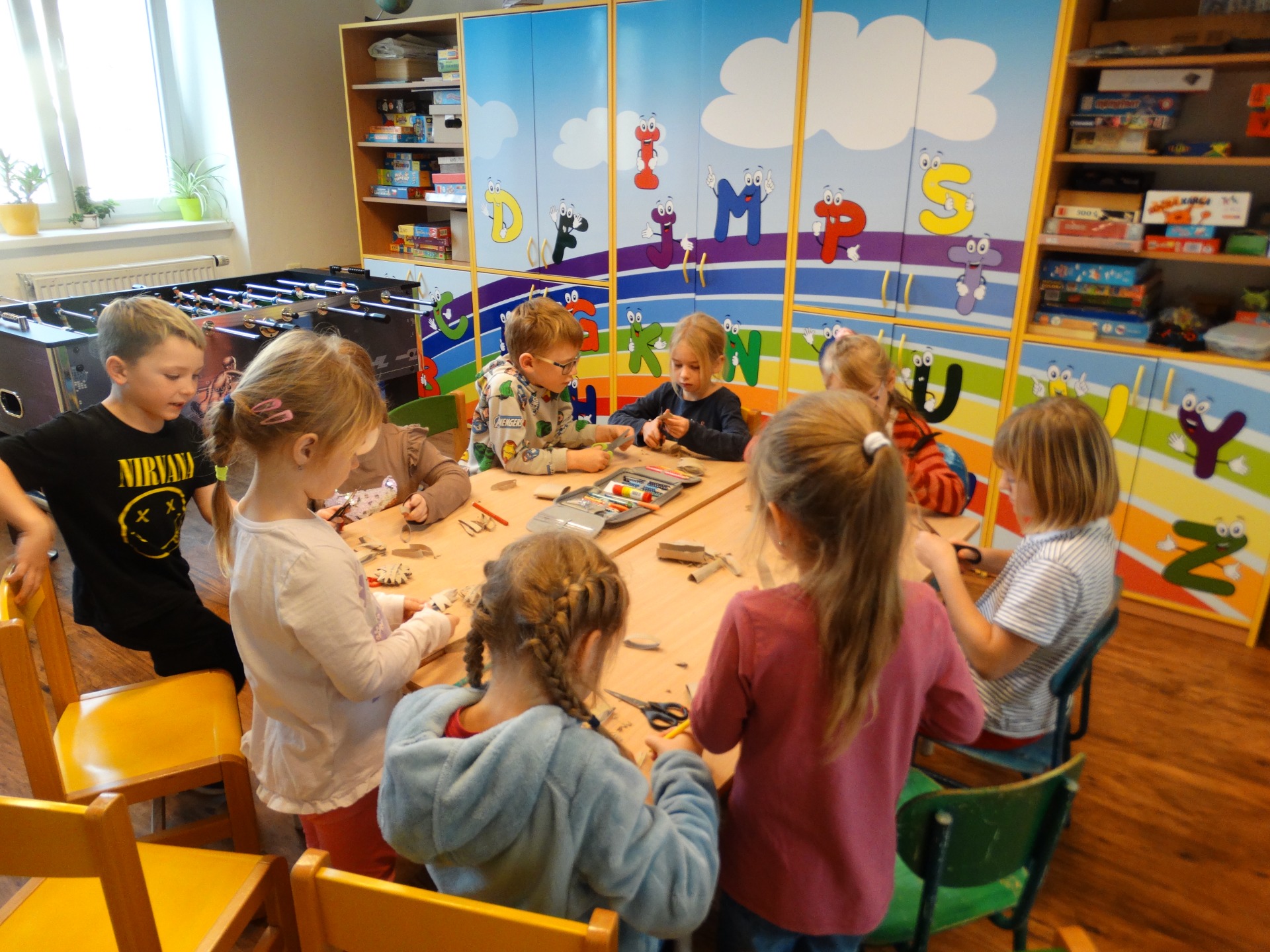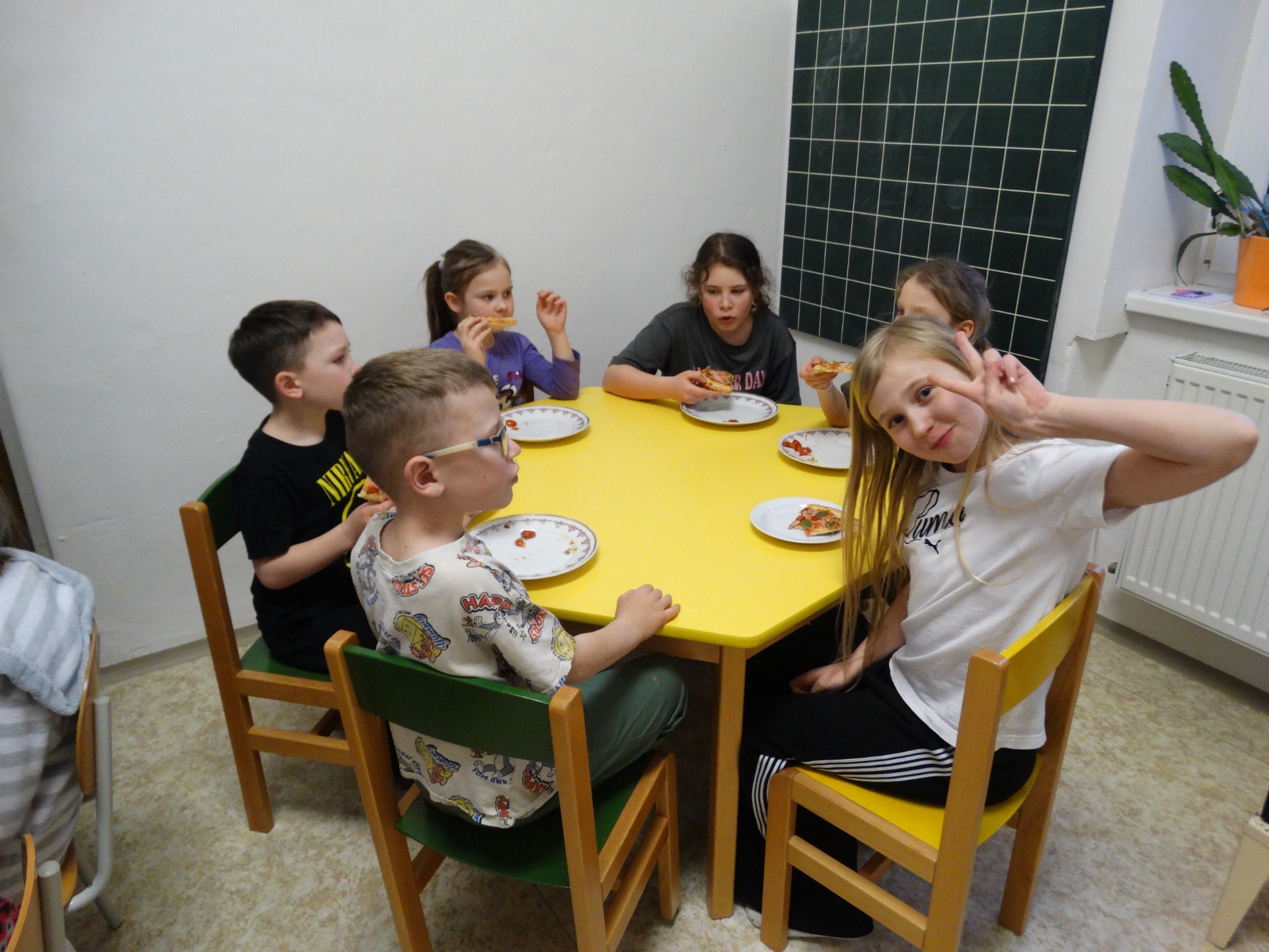 V květnu tady s námi byla na praxi studentka SOŠPg Čáslav Anička, s kterou jsme si to pěkně užili - vyráběli jsme, soutěžili, hráli různé stolní hry.