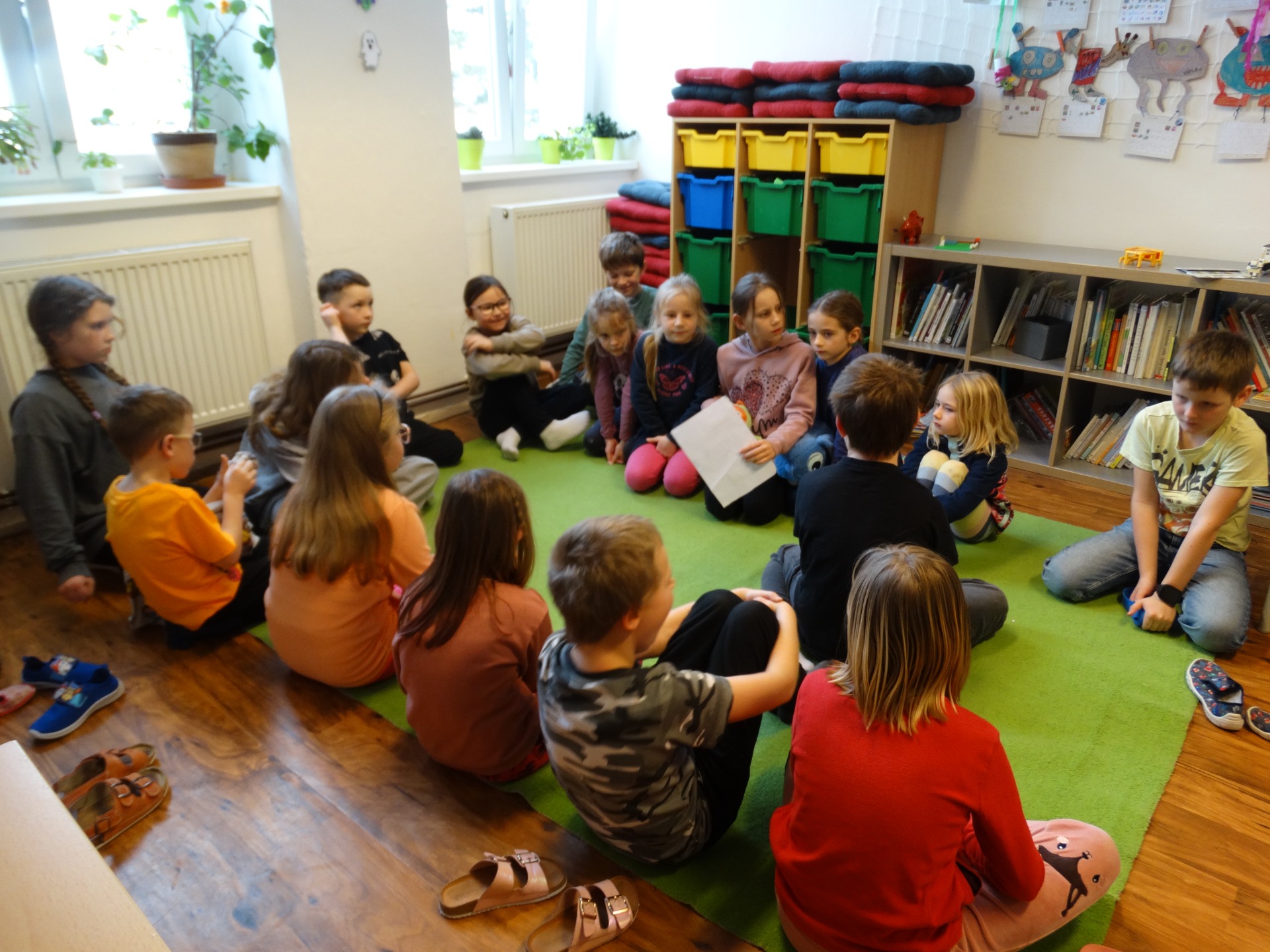 Společně jsme četli z knih různé příběhy, o kterých jsme si pak povídali, převyprávěli je svými slovy a odpovídali na otázky.