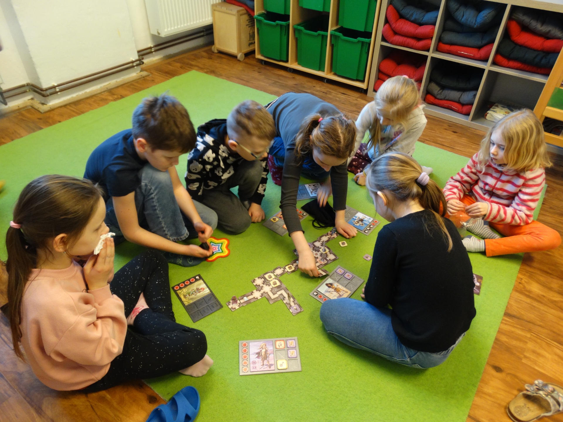 Ve středu jsme měli herní den – prostě Turnaj ve stolních hrách – no, nakonec jsme si sami na tabuli napsali TICHO – ale moc to nepomohlo 😊 Příště to snad zvládneme lépe. Hráli jsme Ubongo, Umí prase létat?, Pexetrio, Labyrinth, Ty krávo! – střídali jsme se na stanovištích a sbírali razítka za odehrané hry.